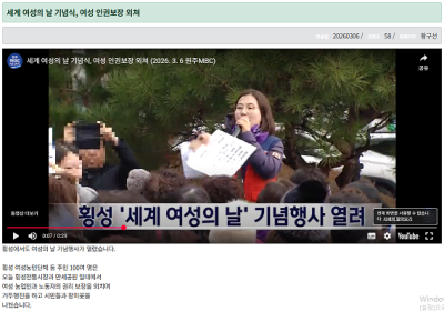 3.8세계여성의날 기념식, 여성 인권보장 외쳐(MBC 2026.03.06) > 갤러리