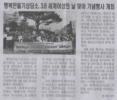 강원사회복지신문(2026.03.09) 행복만들기 상담소, 3.8세계여성의날 기념행사