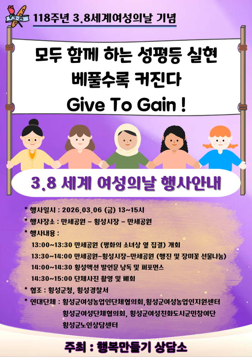 ° 연대단체: 횡성군여성농업인단체협의회, 횡성군여성농업인지원센터,